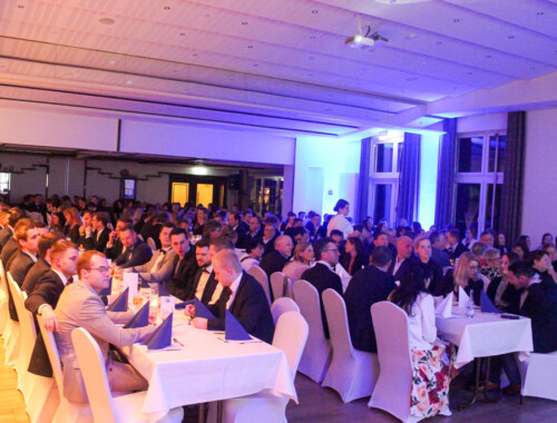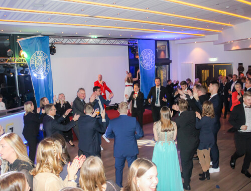 Der Festsaal wurde wieder in einem herausragenden Ambiente mit einer großen Showbühne, feierlicher blau-weißen Dekoration, Vereinsfahnen und stimmungsvoller Beleuchtung präsentiert. Das gepaart mit der stilvollen Abendgarderobe in die sich jeder Gast geworfen hat, bot allen beteiligten eine eindrucksvolle Kulisse.