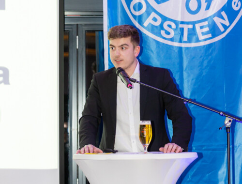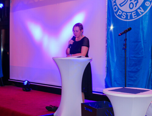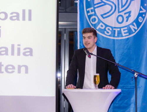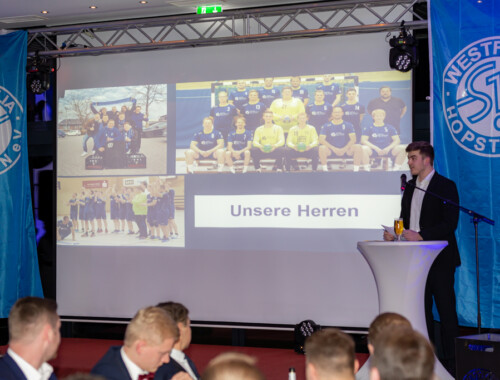 Die beiden Moderatoren Jannis Meyer und Christoph Huesmann eröffneten um 19:07 Uhr den Abend mit einer Begrüßung der Mannschaften und Abteilungen. Nachdem sie sich bei der Gaststätte Feldmann, DJ Jonah und allen Sponsoren bedankt haben gaben sie einen Ausblick über das spannende Programm.